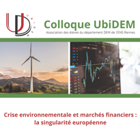 UbiDEM, l’association des élèves du département DEM de l’ENS Rennes organise un colloque de recherche sur le thème de "Crise environnementale et marchés financiers : la singularité européenne".