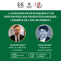 La problématique de la gestion de l’eau a été étudiée sous ses prismes économiques et sociaux par les intervenants (Mayol, A. & Porcher, S. "Tarifs discriminants et monopoles de l’eau potable : Une analyse de la réaction des consommateurs face aux distorsions du signal-prix", Revue Économique, 2019). La recherche dans ces champs disciplinaires permet d’élaborer des solutions pour une gestion soutenable de cette ressource. Ainsi, les tarifs discriminants* apparaissent comme l’une des solutions possibles pour réaliser la transition environnementale sans omettre les enjeux économiques et sociaux.